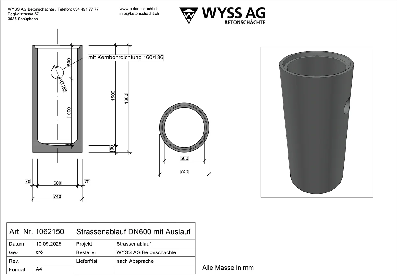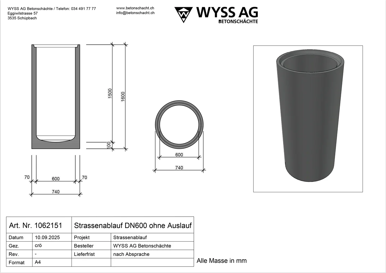 Strassenablauf DN 600 mit oder ohne Aussparung